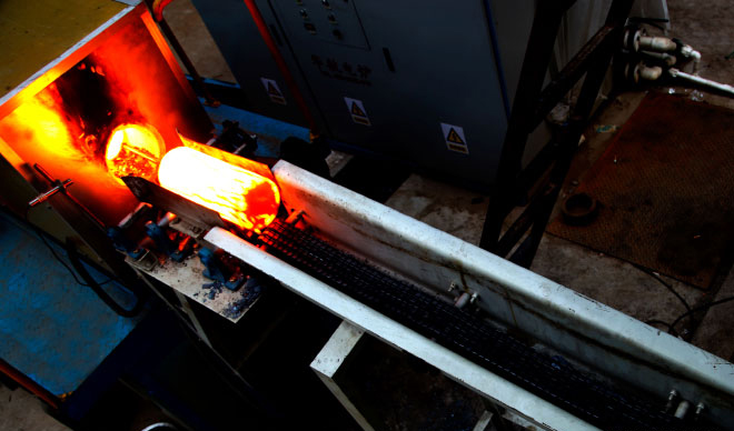 該智能流水線將鍛壓和碾壓軋制工藝融為一體,從毛坯下料、上料、加熱、初鍛、碾壓成型到成品輸出,實(shí)現(xiàn)了自動化流水作業(yè)。它是我公司《起重機(jī)車輪碾壓成型新工藝裝備》、《起重機(jī)車輪鍛壓用新型加熱工藝裝備》等多項(xiàng)專利技術(shù)成果轉(zhuǎn)化為生產(chǎn)力的標(biāo)志。